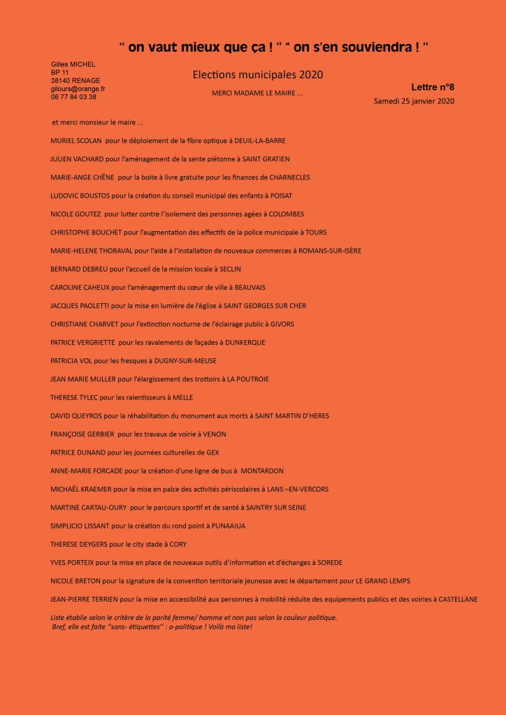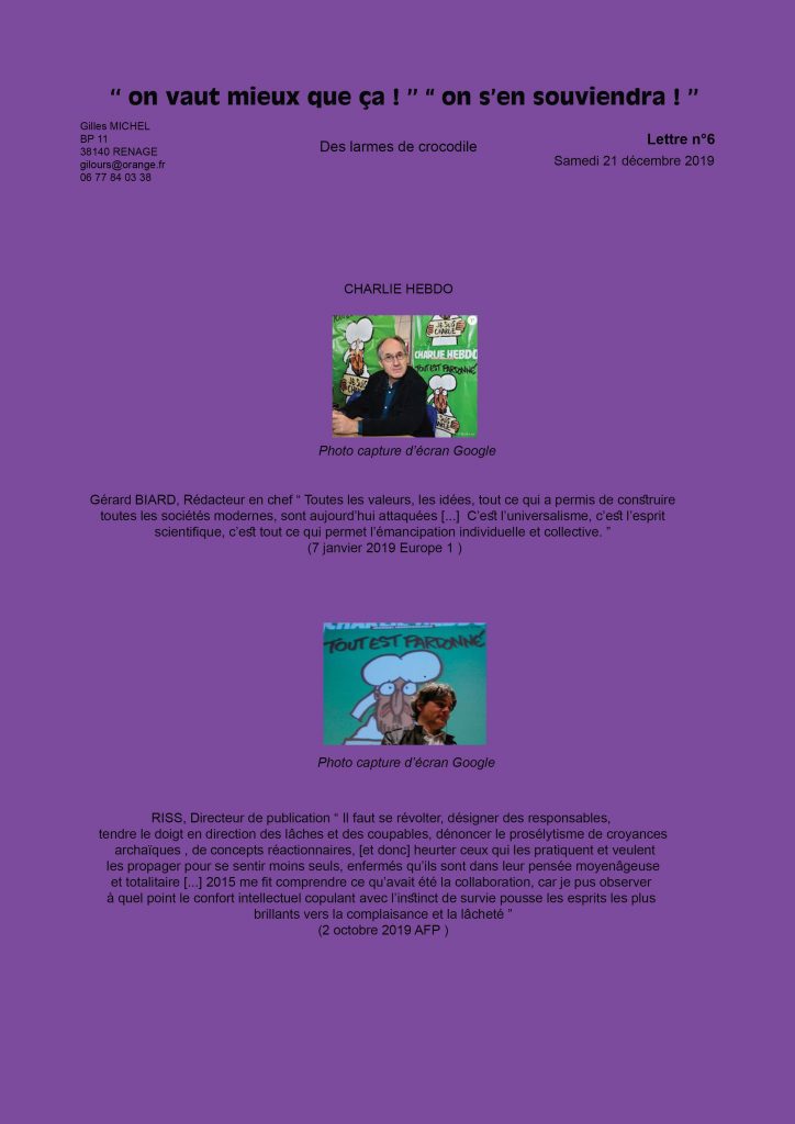 Lettre N°7- le 7 janvier 2019