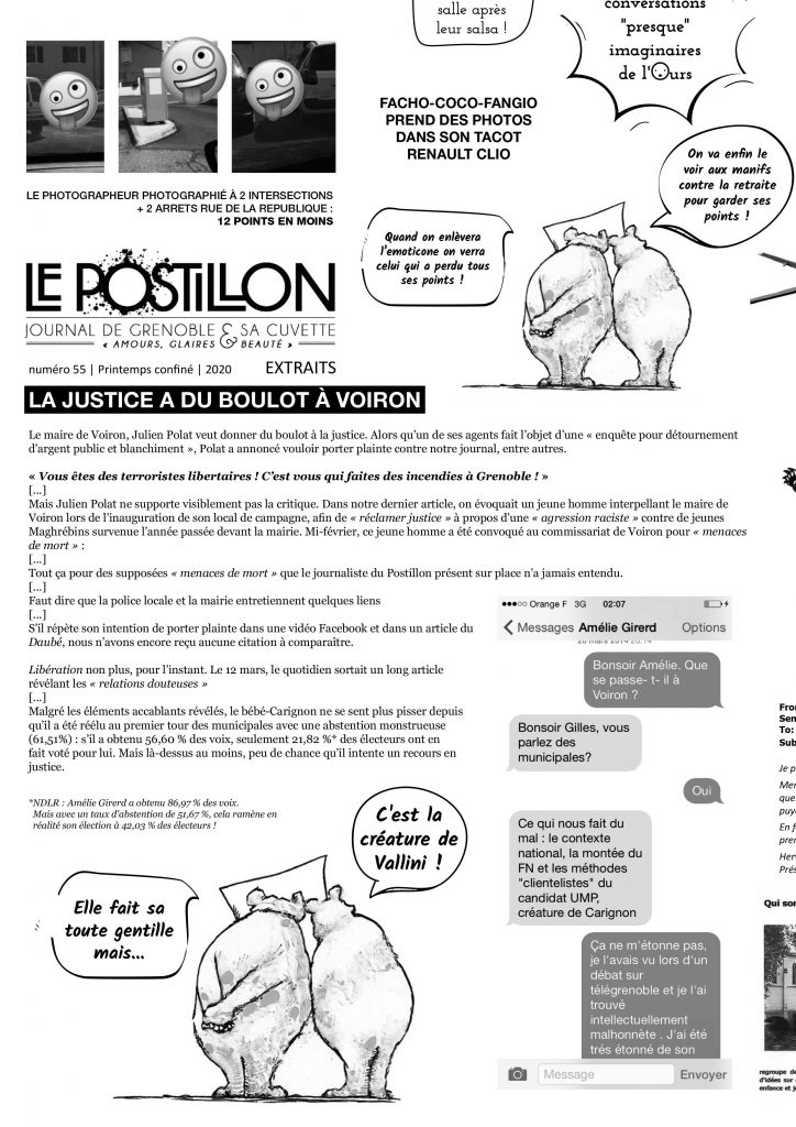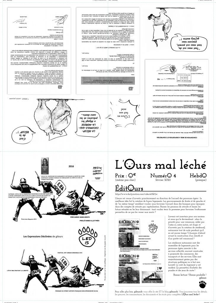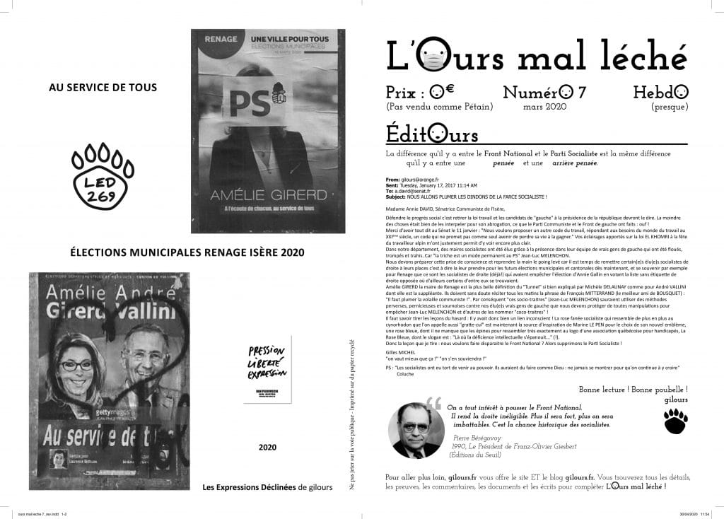 MERCI DE CLIQUER S’IL VOUS PLAIT SUR LE LIEN EN BAS POUR OBTENIR LES 7 PREMIERS NUMÉROS DE “ L’OURS MAL LÉCHÉ “ , JOURNAL QUI SE PRÉSENTE DANS SON N° 1, UN GOUTÉ PRESQU’HEBDO GRATIS DISTRIBUÉ À RENAGE DANS L’ISÈRE EN FRANCE EN 2020 ET DONT LA DIFFUSION BIENTÔT PRESQUE MENSUELLE REPRENDRA POUR S’ÉTENDRE AU CANTON, À L’INTER-CO, AU VOIRONNAIS ET AUX GOURMANDS DE LA NEWSLETTER gilours :