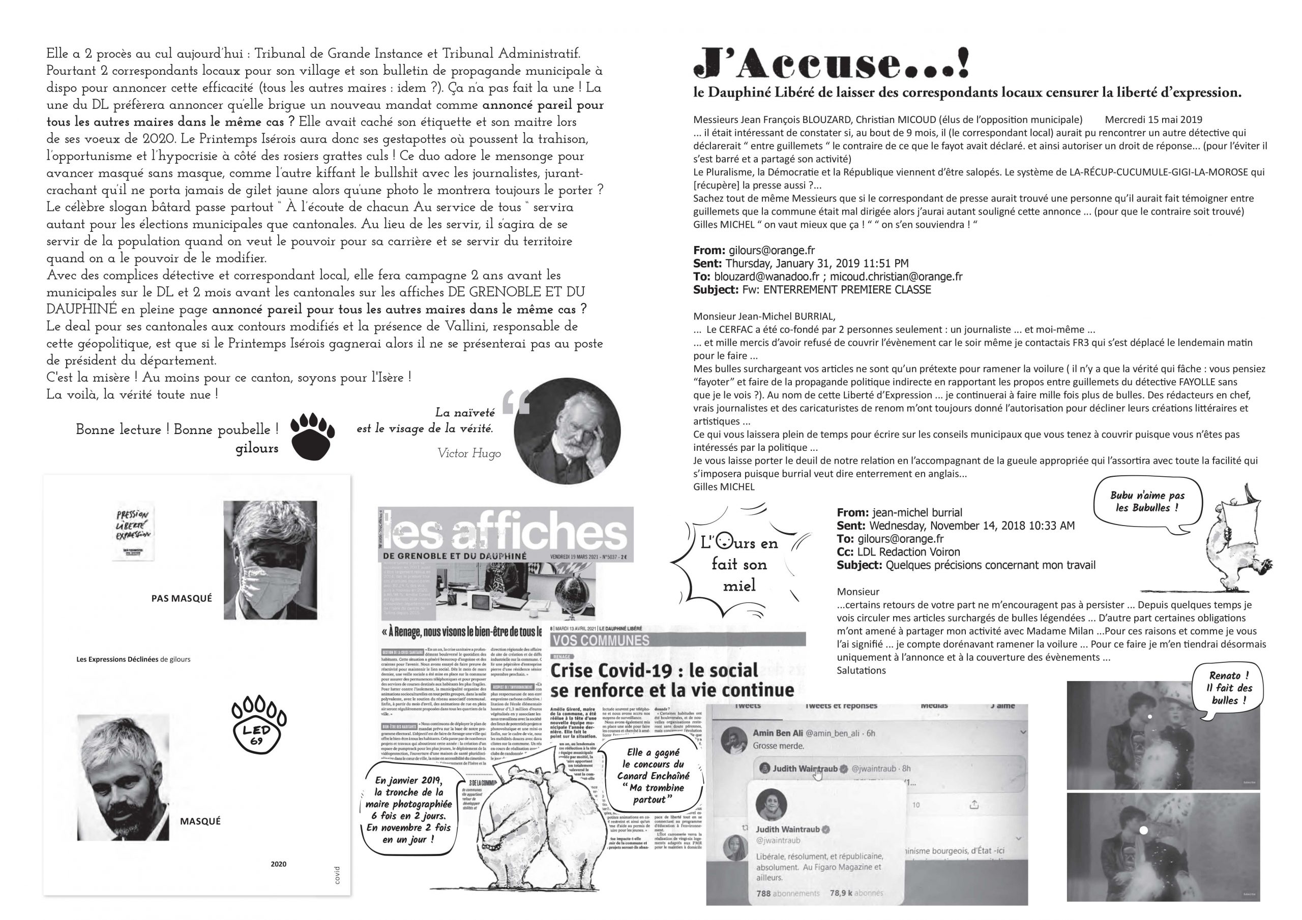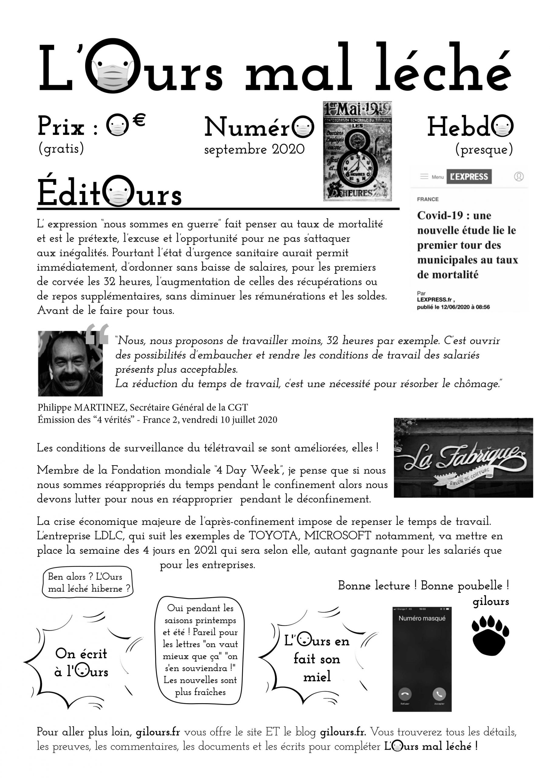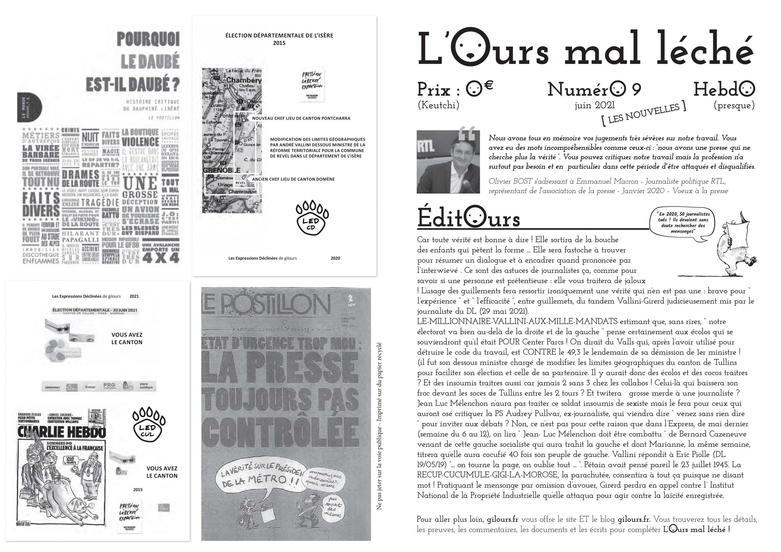 MERCI DE CLIQUER S’IL VOUS PLAIT SUR LE LIEN EN BAS POUR OBTENIR LES 7 PREMIERS NUMÉROS DE “ L’OURS MAL LÉCHÉ “ , JOURNAL QUI SE PRÉSENTE DANS SON N° 1, UN GOUTÉ PRESQU’HEBDO GRATIS DISTRIBUÉ À RENAGE DANS L’ISÈRE EN FRANCE EN 2020 ET DONT LA DIFFUSION BIENTÔT PRESQUE MENSUELLE REPRENDRA POUR S’ÉTENDRE AU CANTON, À L’INTER-CO, AU VOIRONNAIS ET AUX GOURMANDS DE LA NEWSLETTER gilours :